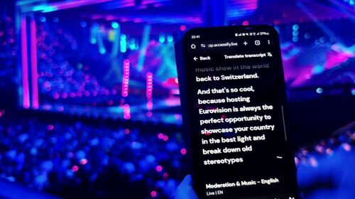 Accessify.live ermöglicht Live-Event-Audio und Echtzeit-Transkriptionen (Speech-to-Text) mit Text-Übersetzungen, direkt auf das eigene Endgerät. Besucherinnen und Besucher können den Service unkompliziert vor Ort nutzen, indem sie den QR-Code scannen und ihren Stream wählen.